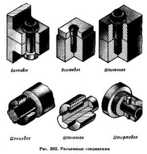 Разъемными называют соединения, при разборке которых не происходит нарушений целостности составных частей изделия (резьбовые, штифтовые, шпоночные, шлицевые и др.). В быту чаще всего встречаются резьбовые.